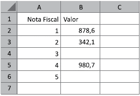 Tem-se a seguinte planilha criada no Microsoft Excel 2010, em sua configuração padrão: