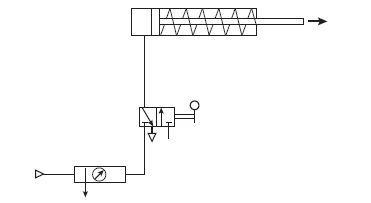 O circuito pneumático mostrado na Figura abaixo ilustra um cilindro de ação simples sendo acionado por uma válvula direcional.