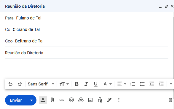 2. Fulano de Tal é o destinatário, Cicrano de Tal receberá uma cópia e Beltrano de Tal receberá uma cópia oculta.