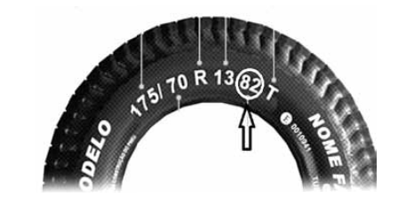 Na substituição de pneus, deve-se comparar as medidas representadas na lateral do pneu com a tabela de medidas de aplicação do fabricante. O número 82, conforme a imagem, indica