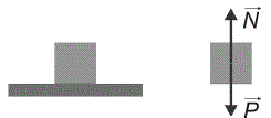 Considere as duas situações seguintes de um bloco apoiado sobre um plano e as forças, peso e normal, que atuam sobre cada um deles.