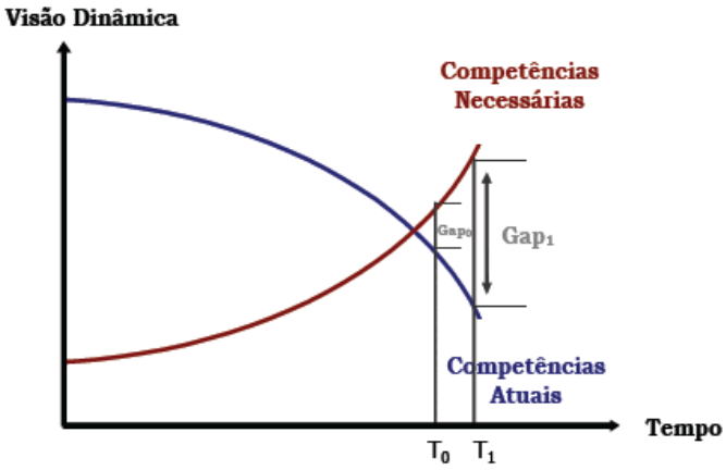 o gap entre as competências atuais e as necessárias tende a aumentar com o tempo;