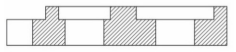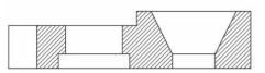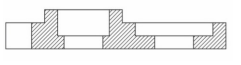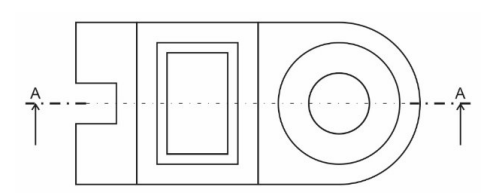 Considerando a vista superior da peça mostrada a seguir, marque a opção que melhor representa o desenho do CORTE AA: