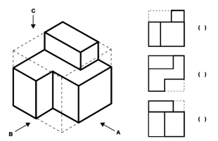 Preencha o plano que corresponde a cada vista da perspectiva, de cima para baixo.