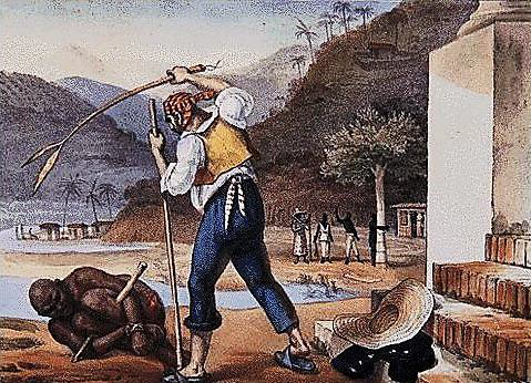 (Jean-Baptiste Debret. Feitores castigando escravos.)