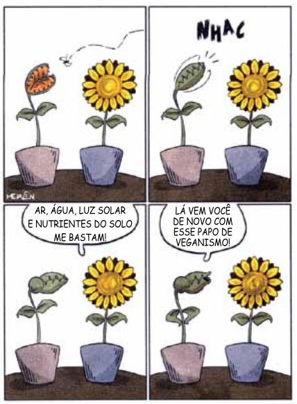 De acordo com conhecimentos sobre a biologia das duas plantas apresentadas na tirinha,