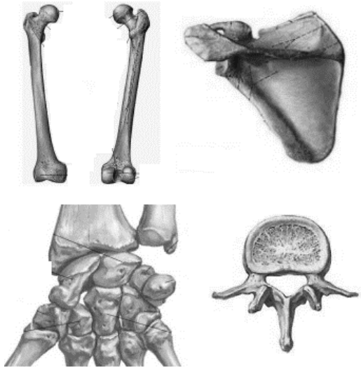 Osso longo, osso laminar, osso chato, osso espinhoso.