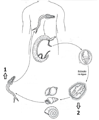 penetra ativamente em um hospedeiro intermediário. No esquema ela é indicada pelo número 1.