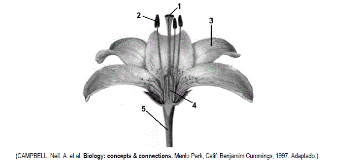 A figura a seguir representa uma flor hermafrodita e suas estruturas principais que estão numeradas: