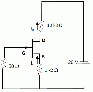 Sabendo-se que a tensão sobre o resistor de 50 Ω é de 1,2 V e que sobre o resistor 10K8 Ω é de 8 V, o valor de ID, em m A, vale: