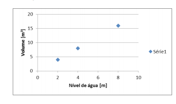 Deseja-se traçar, em um gráfico, o nível de uma coluna de água em um reservatório em função do volume de água armazenado nesse reservatório, utilizando o Microsoft Excel, conforme é ilustrado na figura a seguir. O procedimento correto para traçar tal gráfico é