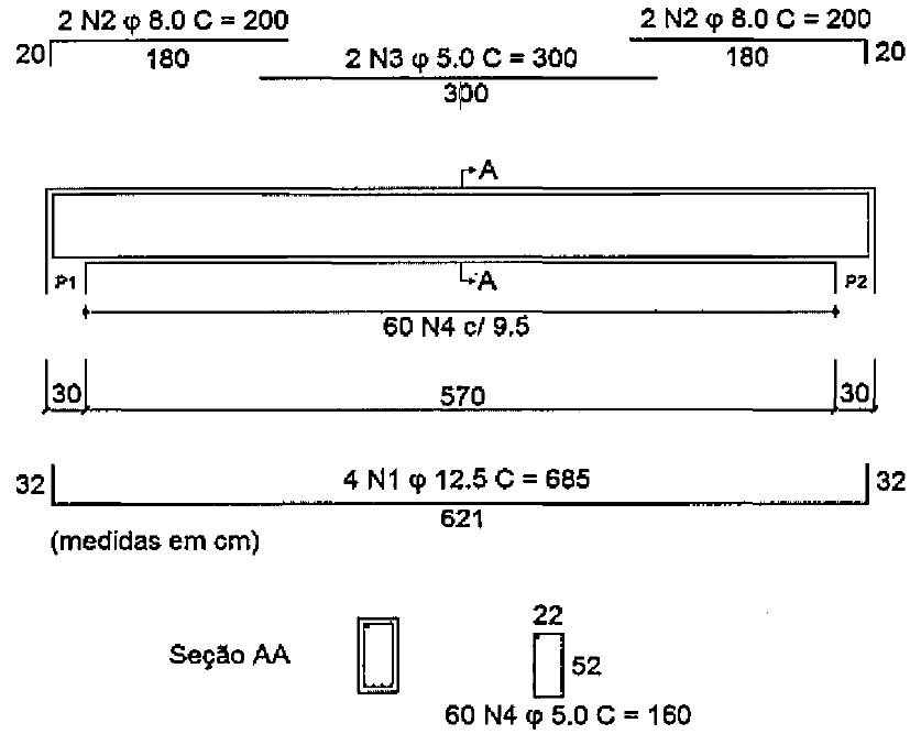 Dados: Peso por metro dos vergalhões: φ5.0 - 0,16 kg/m; φ8.0 - 0,40 kg/m; φ12.5 - 1,00 kg/m.
