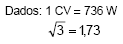 Um motor de indução trifásico de 220 V e 10 CV tem fator de potência 0,90 e opera com rendimento de 90%. A sua corrente nominal vale, em A, aproximadamente,