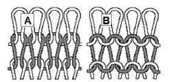 Nas figuras abaixo, que representam a malha de trama, estão os dois lados de uma malha, em que o avesso técnico é a representação A e o direito é a B.