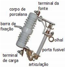 Os transformadores das subestações em poste são comandados e protegidos por chaves seccionadoras fusíveis, como a mostrada na figura a seguir. Uma subestação em poste tem um transformador de 225 kVA, trifásico, tensão primária de 13800V e tensão secundária de 380/220V. A especificação do elo fusível que deverá ser colocado no porta fusível da chave da subestação, idêntica à chave mostrada na figura, é