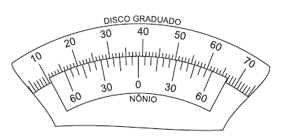 A Figura acima representa um goniômetro de resolução 5’. A leitura que é identificada no goniômetro é