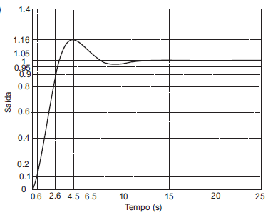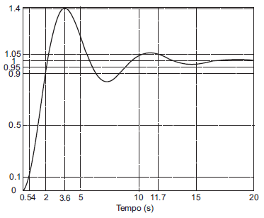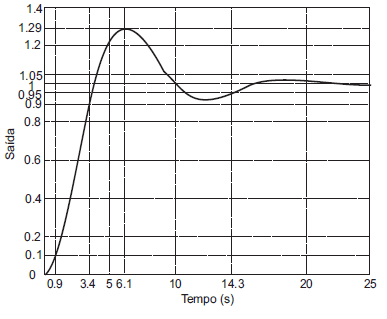 A resposta ao degrau de um sistema apresenta tempo de subida tr = 1.4 s, tempo de pico ...