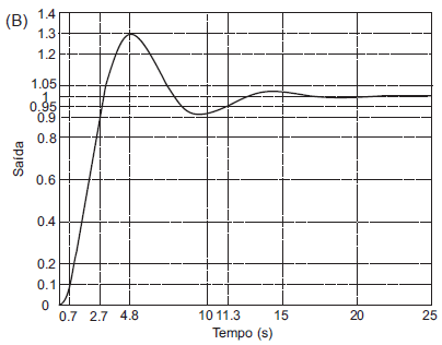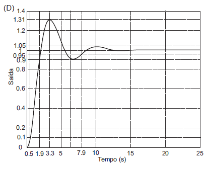 = 7.9 s (critério de 5%) e sobrepasso de 31%. Dentre os gráficos abaixo, o que corresponde à resposta ao degrau do sistema é: