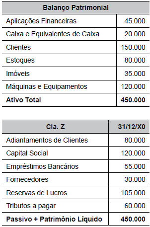Observe o balanço patrimonial da Cia. Z em 31/12/X0:
