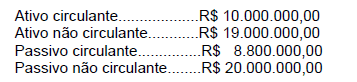 O balanço patrimonial de uma entidade estava assim formado pelos seguintes grupos: