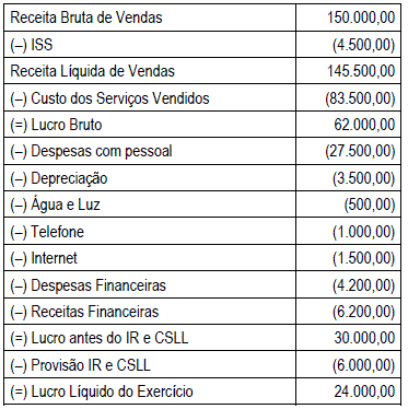 A empresa Valorando S/A apresentou a seguinte Demonstração do Resultado do Exercício (DRE) em 31/12/2019: