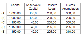 Além disso, houve a constituição de reserva legal (5%), conforme determinado na Lei nº 6.404/76.