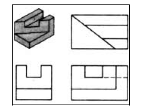 Considere que a figura abaixo mostra um objeto representado pelas suas vistas ortográficas de frente, superior e lateral esquerda, além de uma perspectiva isométrica. Nessa situação, pela posição das vistas, é correto afirmar que o objeto está situado no 3.º diedro de projeção.