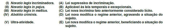 Quanto à eficácia temporal da Lei Penal, relacione a coluna da esquerda com a da direita.