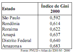 III " Rondônia e Roraima apresentam menor concentração de renda em comparação com o Amapá.