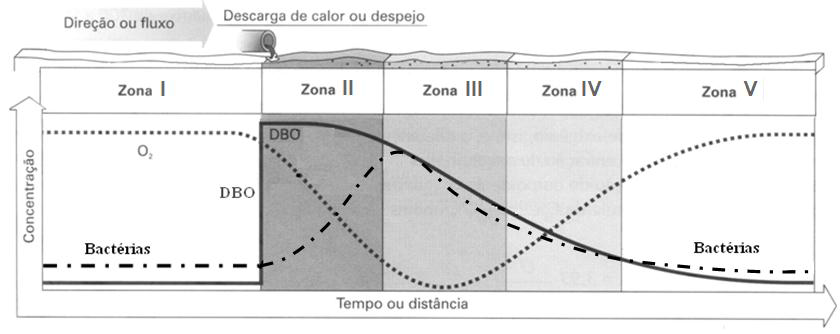 Um dos fenômenos mais importantes estudados na Limnologia é autodepuração de um curso d’água após o lançamento de uma carga de esgoto doméstico em águas limpas.
