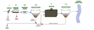 A figura mostra o fluxograma típico do sistema de lodos ativados convencional implantado em uma estação de tratamento de esgotos.