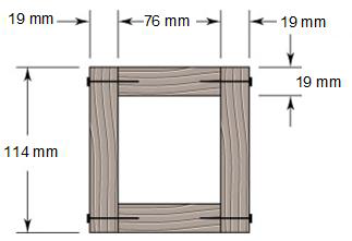Uma viga caixão quadrada é construída a partir de quatro tábuas, conforme a imagem. Sabendo que o espaçamento