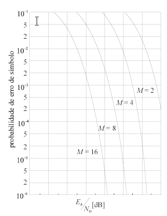 O desempenho da probabilidade de erro de símbolo do sistema detector ilustrado na figura III no caso de o canal de transmissão ser do tipo AWGN, e não Rayleigh, pode ser corretamente ilustrado pela figura a seguir, em que