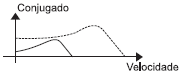 A chave compensadora é uma topologia de acionamento de motores de indução trifásicos com rotor em gaiola. A finalidade desse circuito é reduzir a corrente de partida através da redução da tensão aplicada nos terminais da máquina durrante sua partida. Para reduzir a tensão de alimentação, é utilizado um autotransformador, geralmente com tapes de 50%, 65% e 80%, sendo a escolha do tape de acordo com as características do projeto. Dentre as curvas conjugado-velocidade de um motor de indução apresentadas abaixo, sendo a curva pontilhada correspondente à operação com tensão nominal e a curva cheia correspondente à operação com tensão reduzida, qual curva representa o efeito da redução da tensão de alimentação na curva conjugado-velocidade?