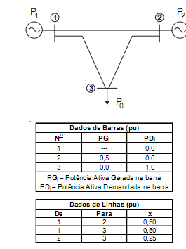 Observe a rede abaixo e os dados de Barras e de Linhas.