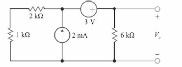 A tensão de Thévenin do circuito apresentado a partir dos terminais do resistor de resistência 6 kΩ é igual a 3 V.