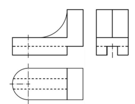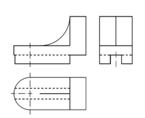 A representação tridimensional de peças mecânicas pode ser realizada através da perspectiva isométrica, sendo que a partir desta obtêm-se as vistas ortogonais, como mostra a figura a seguir.