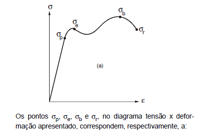 limite de proporcionalidade, limite de escoamento, limite de resistência e tensão de ruptura.