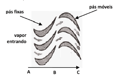 A figura a seguir ilustra um estágio de reação (Parsons) de uma turbina a vapor.