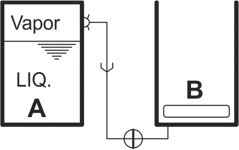 Considere o arranjo mostrado na figura abaixo. No recipiente rígido A com volume igual a 0,0120 m3, tem-se inicialmente água a 300 °C (Vlíq = 0,0020 m3/kg; Vvapor = 0,0200m3/kg) e título igual a 0,5. A válvula é aberta e vapor d´água escoa vagarosamente para o recipiente B que está inicialmente vazio. Nesta situação, a pressão necessária para movimentar o êmbolo é igual a 200 kPa.