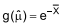Sejam X1, ..., Xn uma amostra aleatória da variável aleatória X~N(µ,1). Sabendo que é o estimador de máxima verossimilhança de µ, então, pelo princípio da invariância, o estimador de máxima verossimilhança de g(µ) = e–µ será: