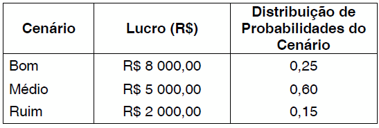 Um empresário, investindo em um determinado empreendimento, espera ter os seguintes lucros em função dos cenários "Bom", "Médio" e "Ruim":