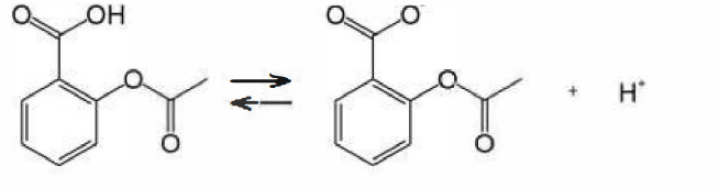 O ácido acetilsalicílico (AAS) é um ácido fraco com pKa e apresenta em solução aquosa o seu equilíbrio da seguinte maneira: