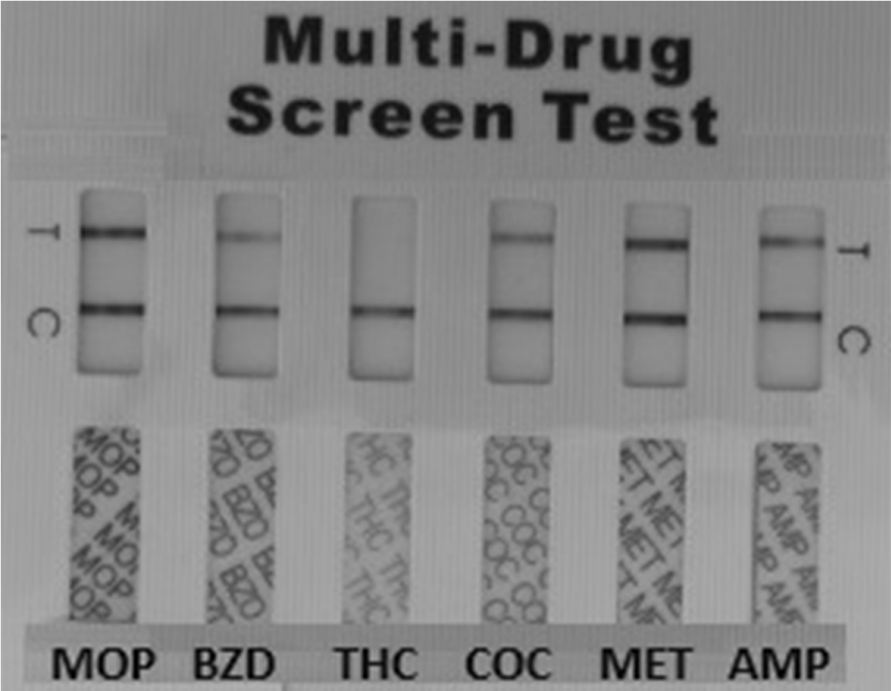 Os testes imunocromatográficos Multi-Drogas são utilizados para detecção rápida e qualitativa de alguns tipos de drogas e seus metabólitos na urina humana. As drogas Anfetamina (AMP), Benzodiazepínicos (BZD), Benzoilecgonina/Cocaína (COC), Metanfetamina (MET), Morfina (MOR) e Marijuana (THC) podem ser detectadas com o teste.