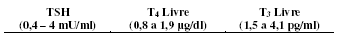 Sabe-se que o hipertiroidismo acomete de 0,2% a 3% da população idosa, com uma freqüência de 21% entre as causas de internamento hospitalar. Dada a importância dessa patologia, qual a concentração mais provável dos hormônios tiroidianos, no plasma sanguíneo, em um paciente com hipertiroidismo?