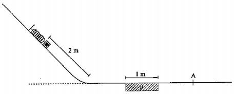 Um sistema massa-mola encontra-se no alto de uma rampa. Na situação ilustrada na figura abaixo, um pequeno bloco de massa 1 kg está em repouso e comprime a mola, de constante elástica 20 N/m, gerando um deslocamento de 1 m com relação à posição de equilíbrio da mola. Quando o sistema é liberado, o bloco desce a rampa e atinge uma superfície horizontal (sem perder energia ao passar da rampa para a superfície horizontal). Na superfície horizontal o bloco passa por uma região com coeficiente de atrito cinético µ=0,2 (não há atrito nas outras regiões) para, em seguida, atingir o ponto A indicado na figura. Considerando as dimensões indicadas na figura e que a rampa tem uma inclinação de 30º com relação à superfície horizontal, determine o módulo da velocidade do bloco, em m/s, quando ele atinge o ponto A, e assinale a opção correta.