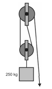 Para o sistema apresentado, qual é a potência necessária para se elevar a carga com uma velocidade de 1 m/s.