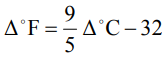 Assinale a alternativa que indica corretamente a expressão da variação de temperatura em graus Fahrenheit ( Δ ºF ) em função da variação de temperatura em graus Celsius ( Δ ºC ).