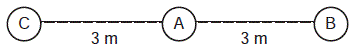 Após esse procedimento, as três esferas são fixadas de modo alinhado, e as esferas B e C distam da esfera A 3 m cada uma, segundo a figura a seguir.