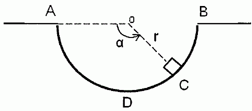 A figura mostra um pequeno bloco de massa m, que inicialmente estava em repouso na posição A, e deslizou sobre a superfície sem atrito em uma trajetória circular ADB de raio r. Sendo g a aceleração da gravidade, qual o módulo da força exercida pela superfície sobre o bloco, ao passar pelo ponto C, em função do ângulo a indicado na figura?
